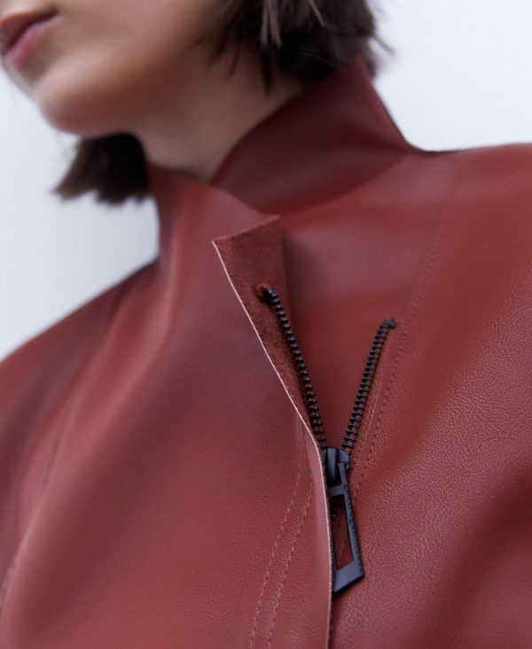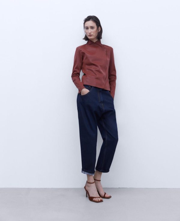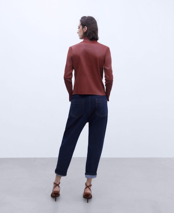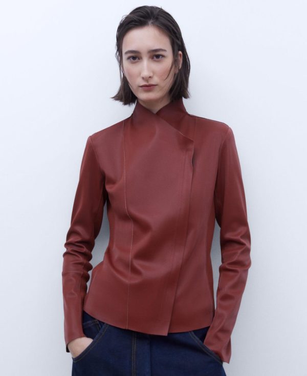Adolfo Domínguez Abrigos Y Chaquetas | Chaqueta Biker En Textura Piel Negro Mujer