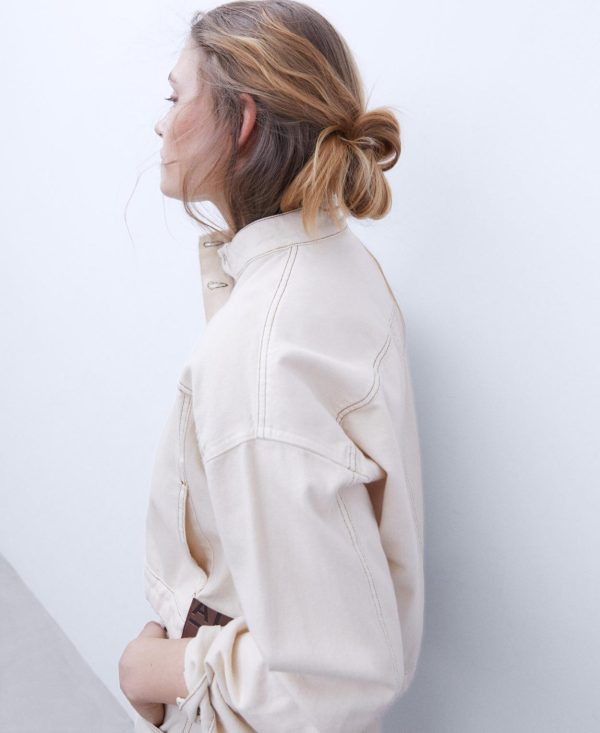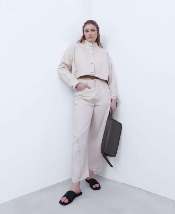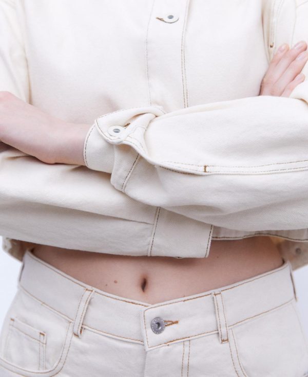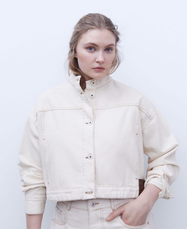 Adolfo Domínguez Abrigos Y Chaquetas | Cazadora Vaquera Con Cuello Chimenea Crudo Mujer