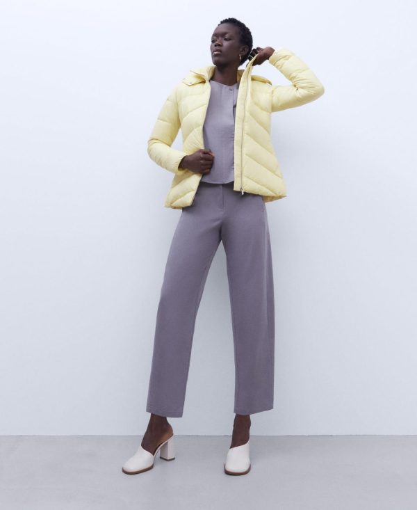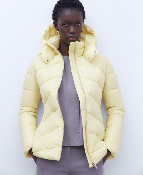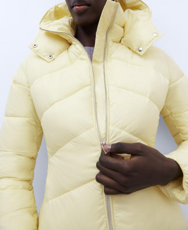 Chaquetón acolchado entallado en nailon. Capucha desmontable. Cierre cremallera. Relleno sintético.