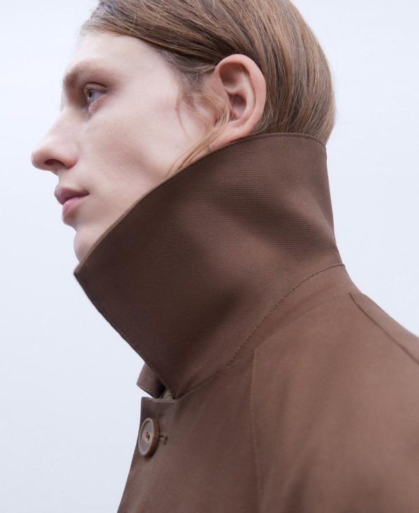 Adolfo Domínguez Abrigos Y Chaquetas | Chaqueta Cuello Chimenea En Algodón Caqui Hombre