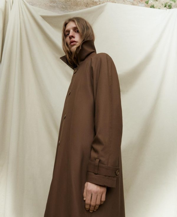 Adolfo Domínguez Abrigos Y Chaquetas | Gabardina Oversize En Algodón Encerado Marrón Hombre