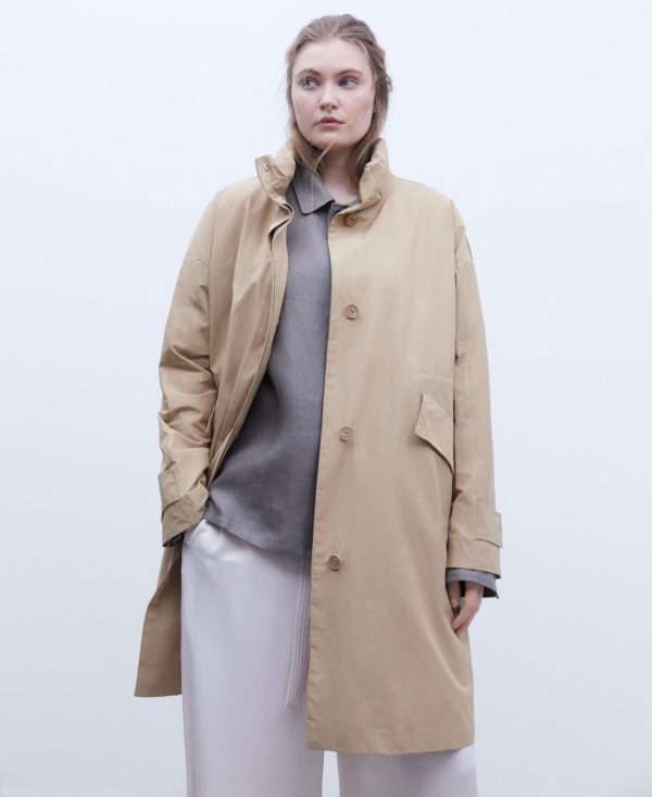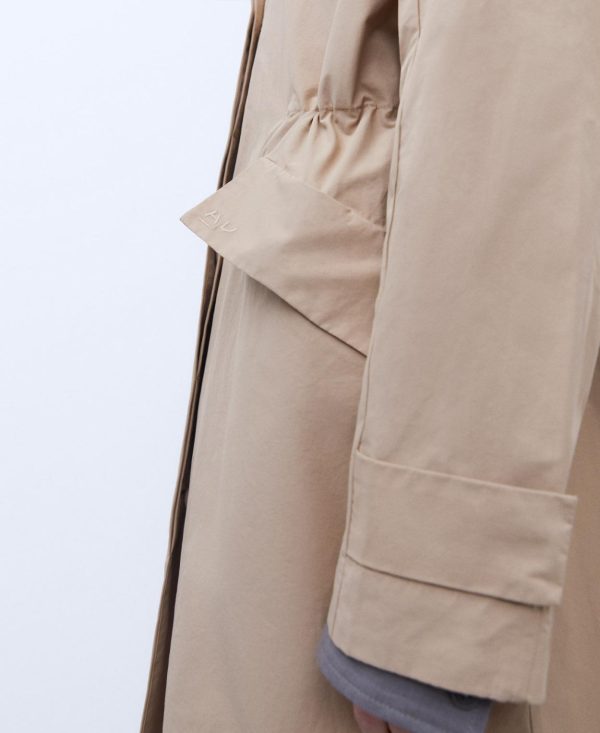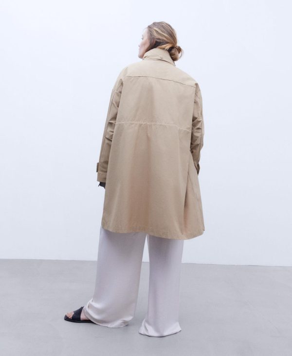 Parka cuello alto en algodón y nailon. Capucha. Bolsillos laterales oblicuos en plastrón. Manga caída. Bajo recto.