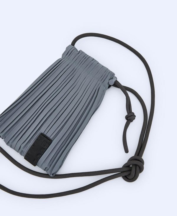 Bolso portamóvil en crinkle. Un compartimento. Cierre con cordón regulable. Logotipado.