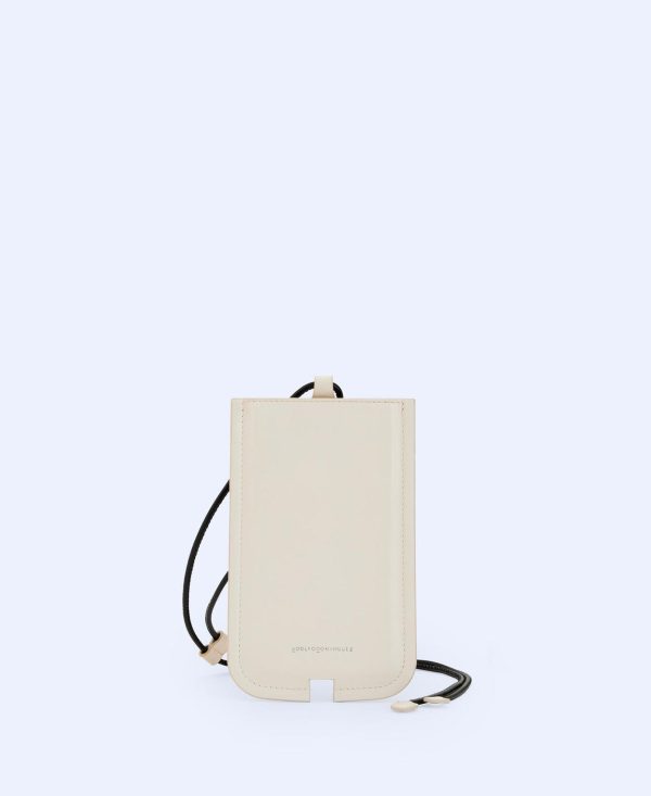 Portamóvil en piel bovina lisa. Cordón ajustable. Logotipado. Forro en algodón.
