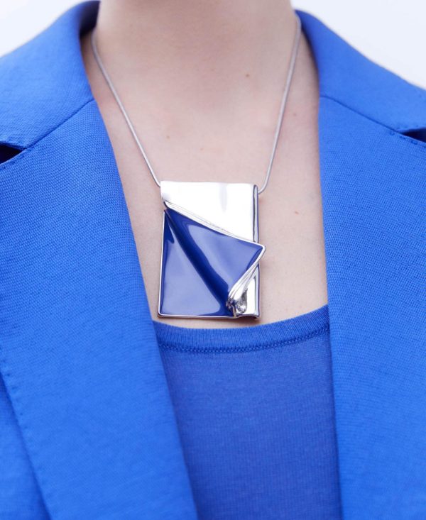 Colgante cuaderno en zinc y resina. Largo regulable. Terminales logotipados.