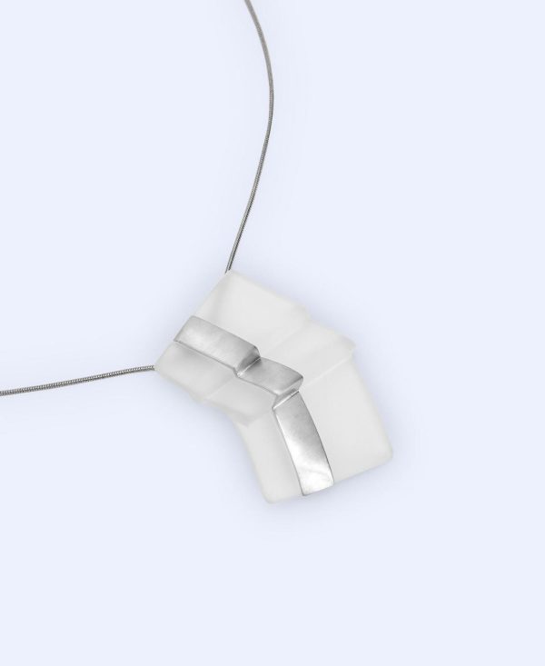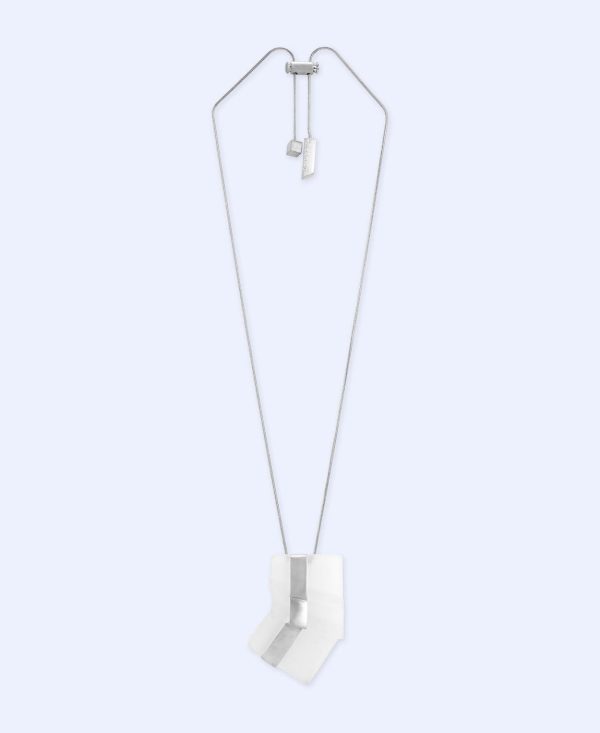 Colgante plisado en zinc y resina. Largo regulable. Terminales logotipados.
