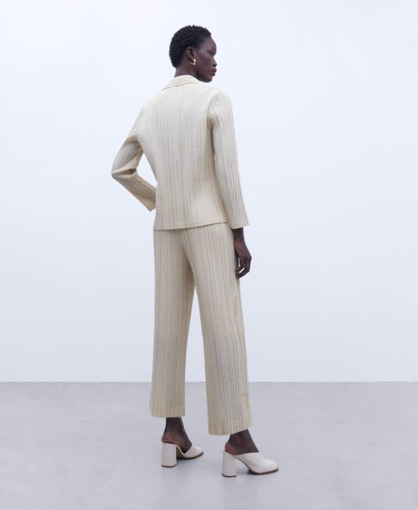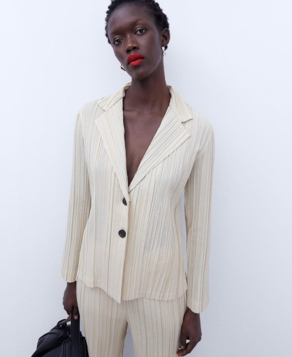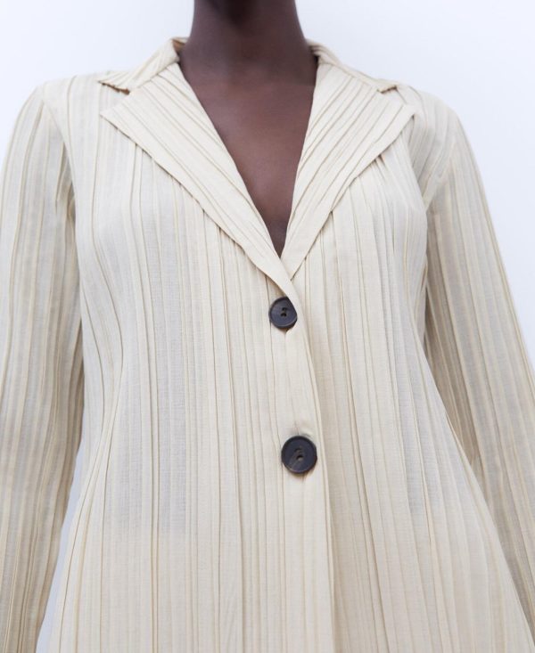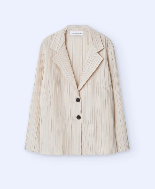 Blazer dos botones en crinkle. Cuello solapa. Sin bolsillos.