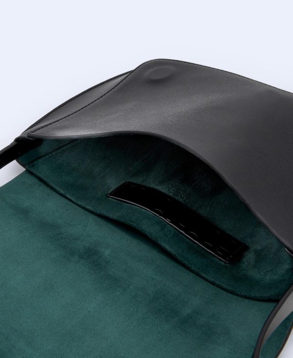 Bolso bandolera en vaqueta lisa. Asa regulable con hebilla. Interior en serraje. Piel responsable.