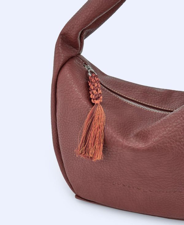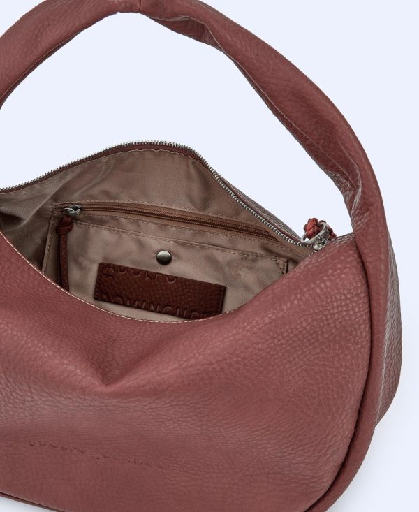 Hobo grande en textura grano en poliéster reciclado. Un compartimento. Asa de hombro regulable. Cierre magnético. Remates en metal reciclado.