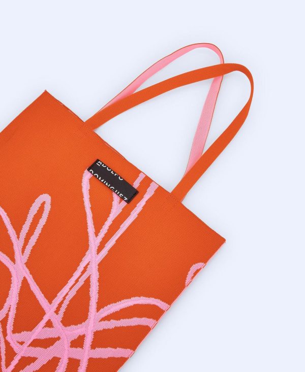 Un compartimento. Estampado colección ágora. Doble asa de hombro en punto.