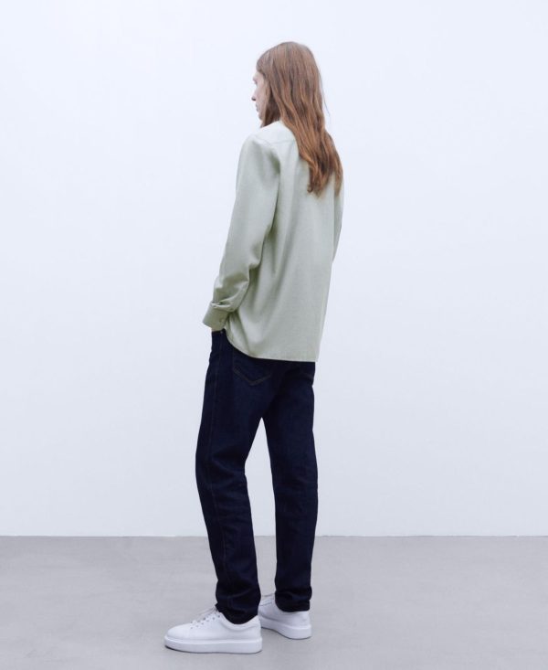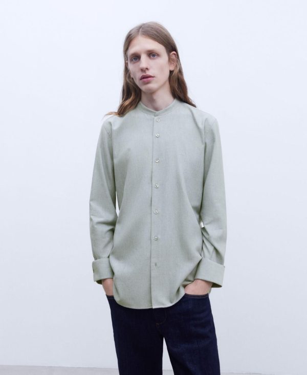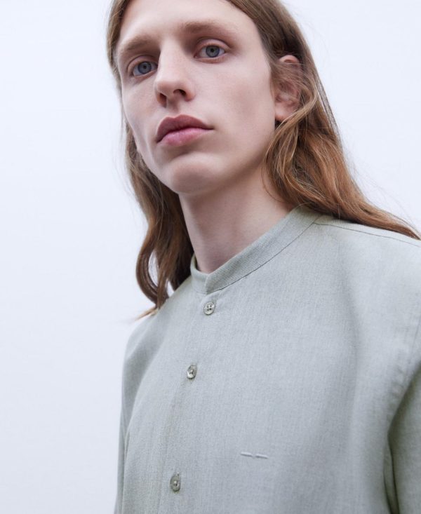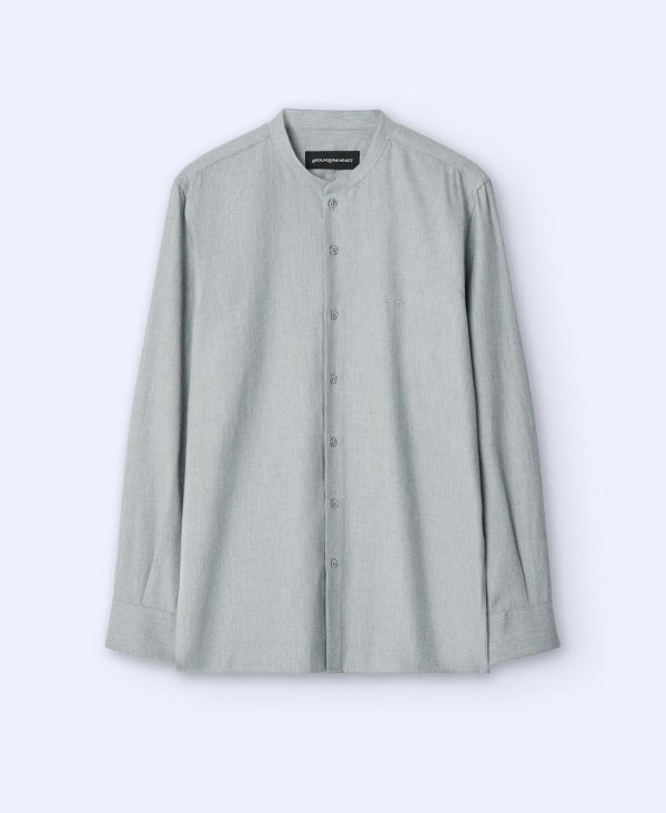 Adolfo Domínguez Camisas | Camisa Cuello Mao En Algodón Gris Claro Hombre