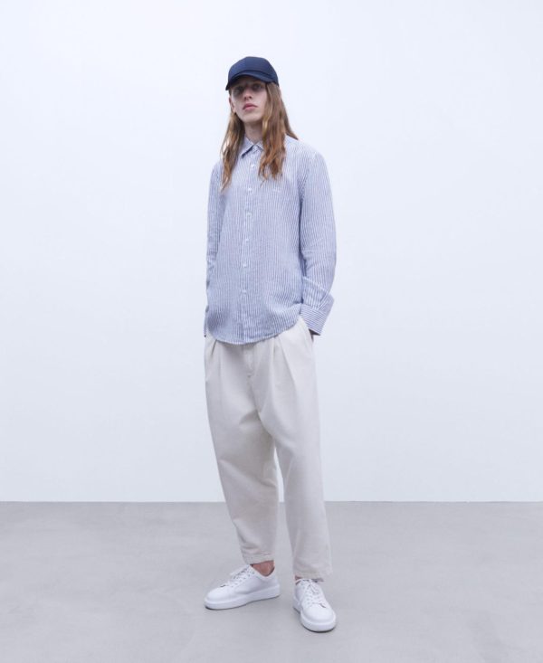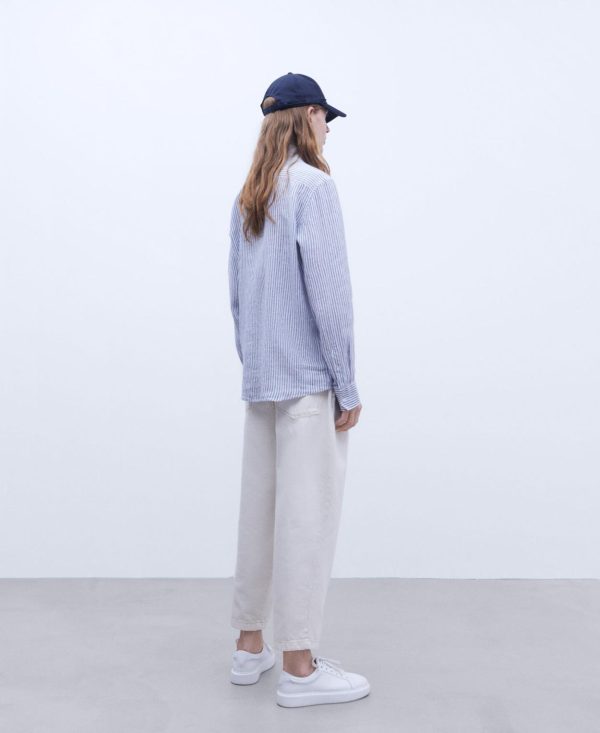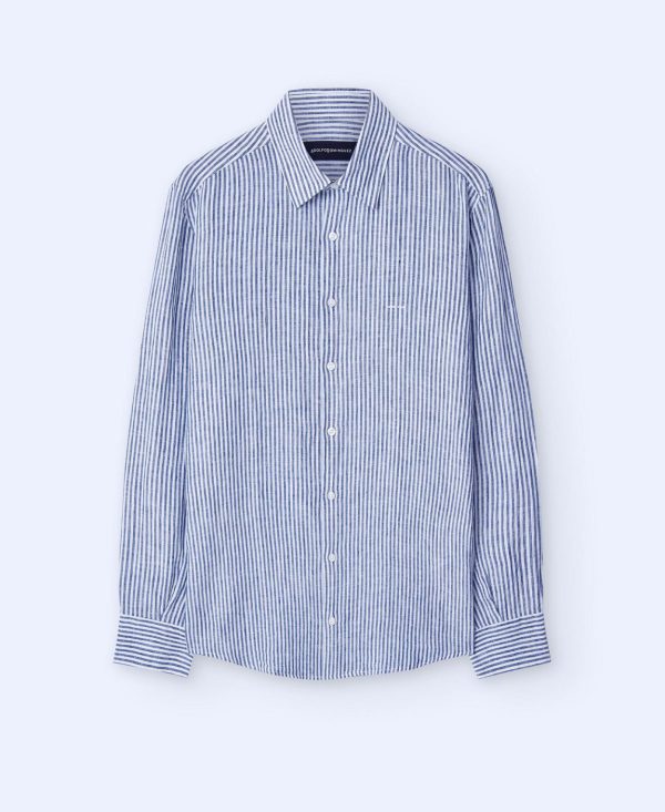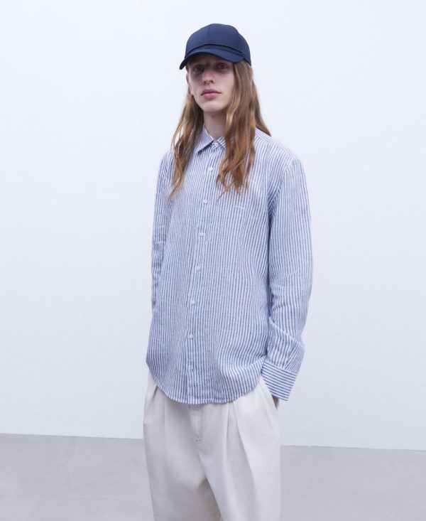 Adolfo Domínguez Camisas | Camisa De Rayas En Lino Rayas Blanco/Azul Hombre