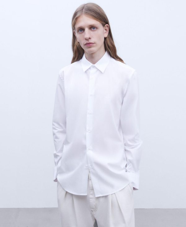 Camisa cuello abotonado en algodón orgánico. Cierre botones. Sardinetas en pico. Logotipo bordado. Bajo redondeado.