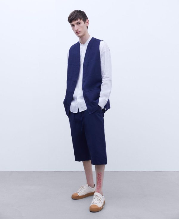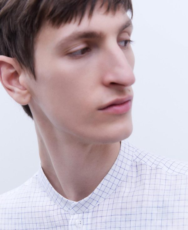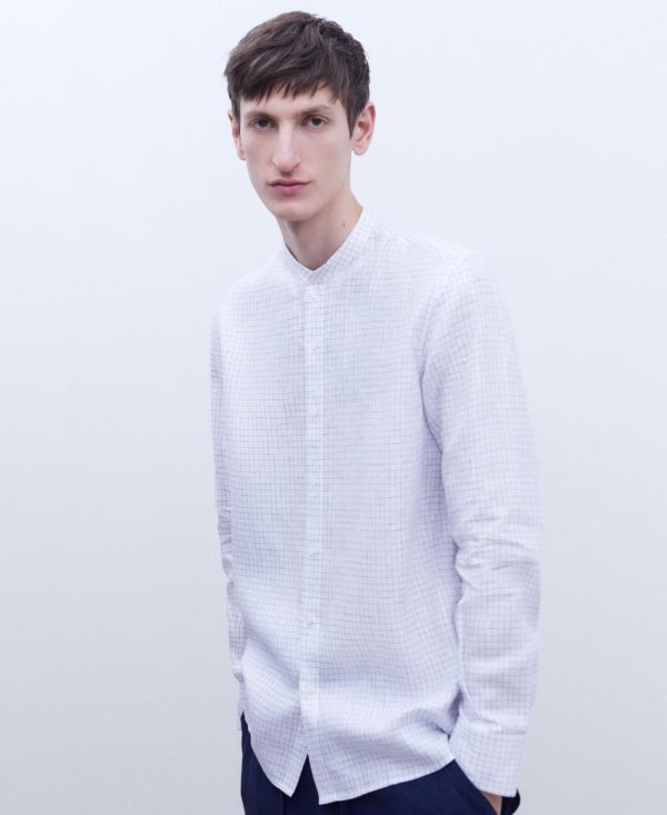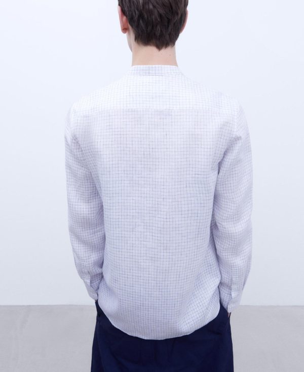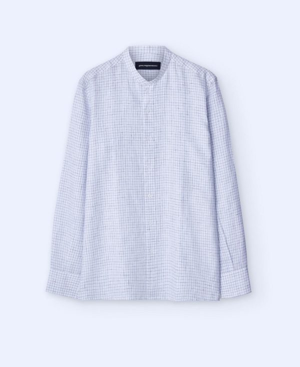 Adolfo Domínguez Camisas | Camisa En Lino Europeo Blanco/Azul Hombre