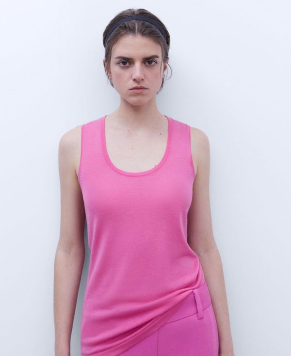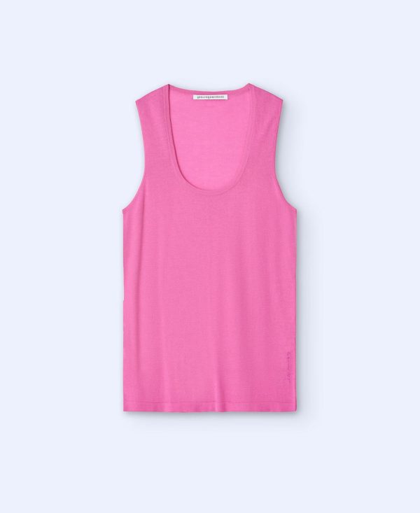 Top en lyocell, algodón y seda Mulberry. Sin mangas. Remates en punto tubular. Logotipado. Bajo recto.