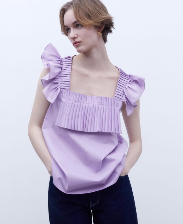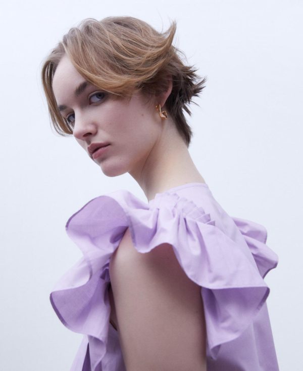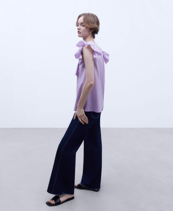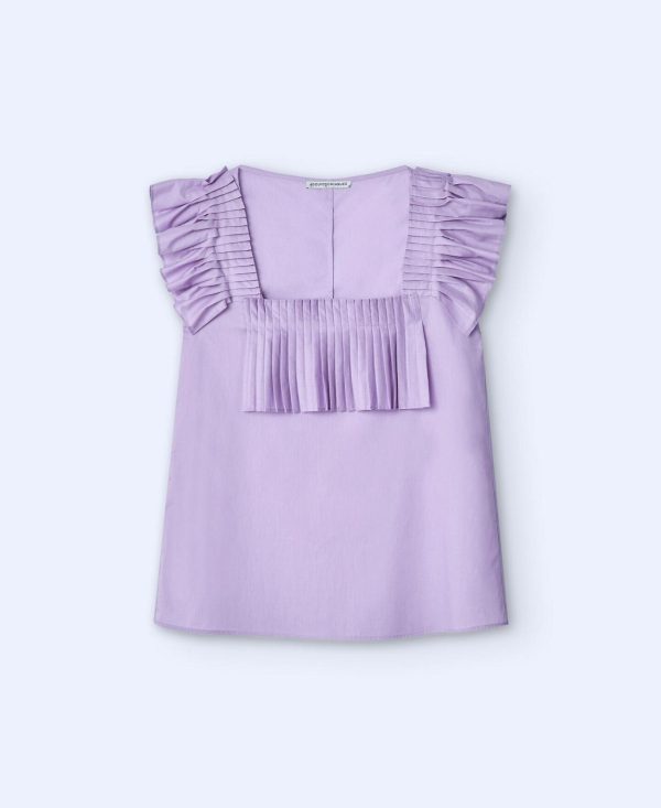 Algodón 100%. Volantes en mangas y escote. Bajo redondeado.