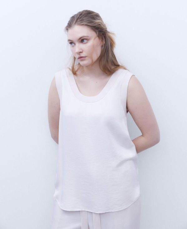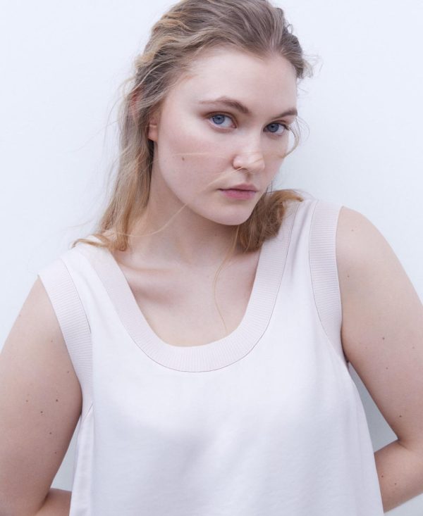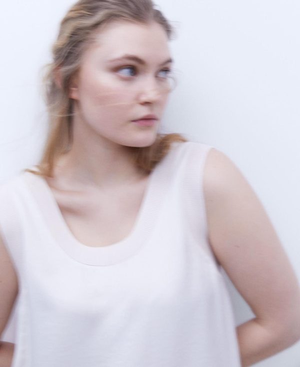 Camiseta con escote redondo. Manga sisa. Remates en canalé. Bajo redondeado.