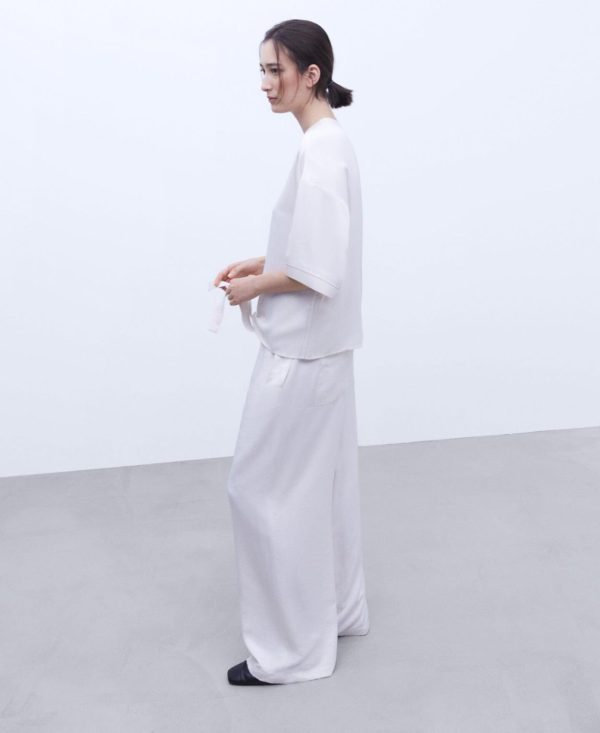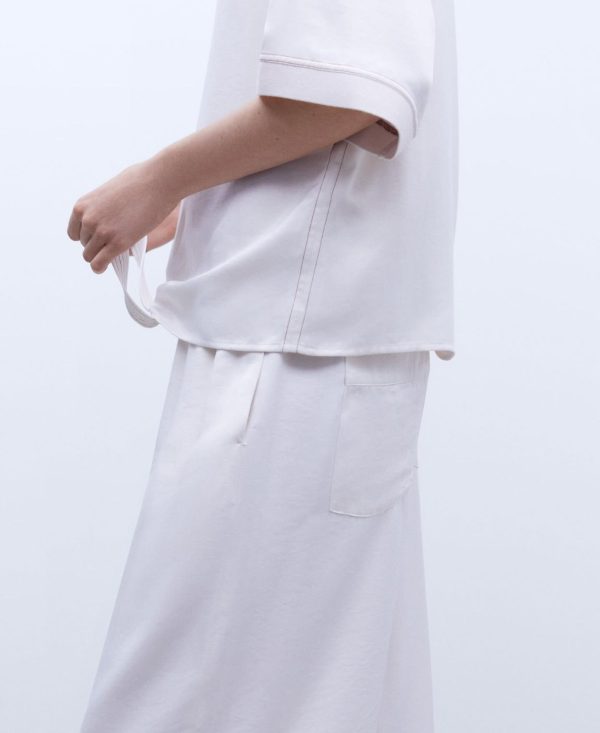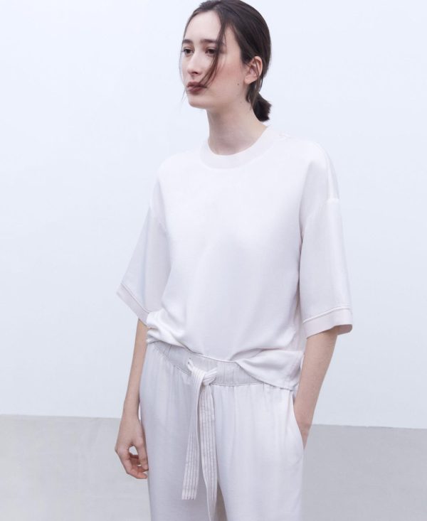 Adolfo Domínguez Camisetas | Camiseta Manga Caída En Algodón Elástico Blanco Natural Mujer