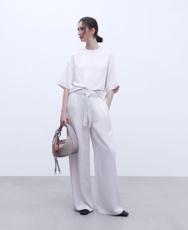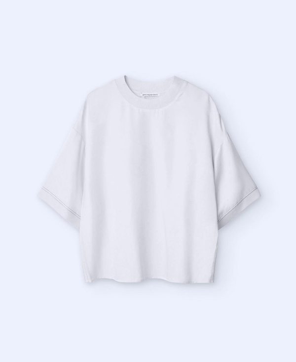 Camiseta de manga corta y caída. Remates en canalé. Bajo recto.