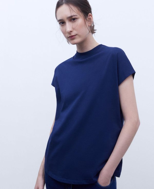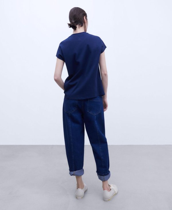 Camiseta en algodón. Manga corta y sentada. Corte recto. Bajo recto. Logotipo bordado.