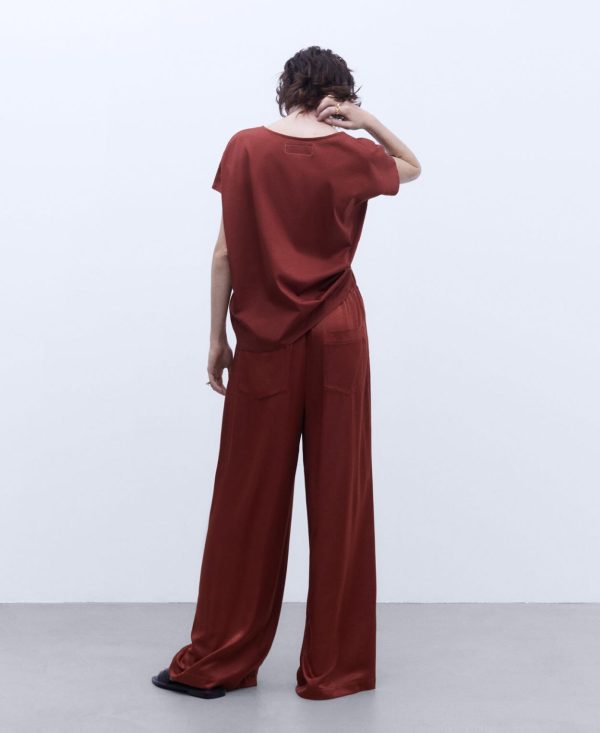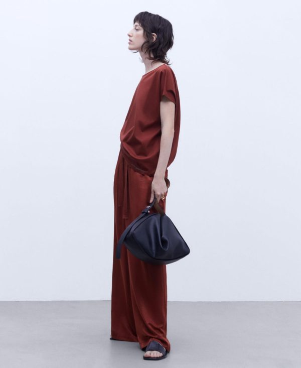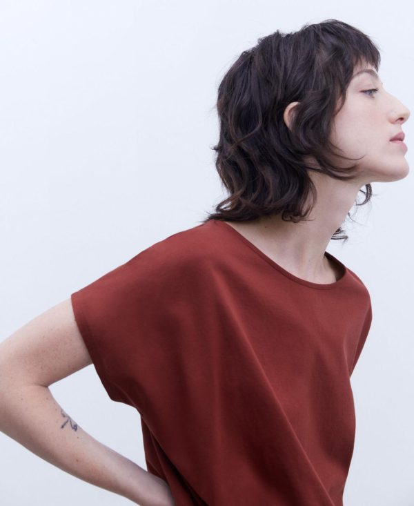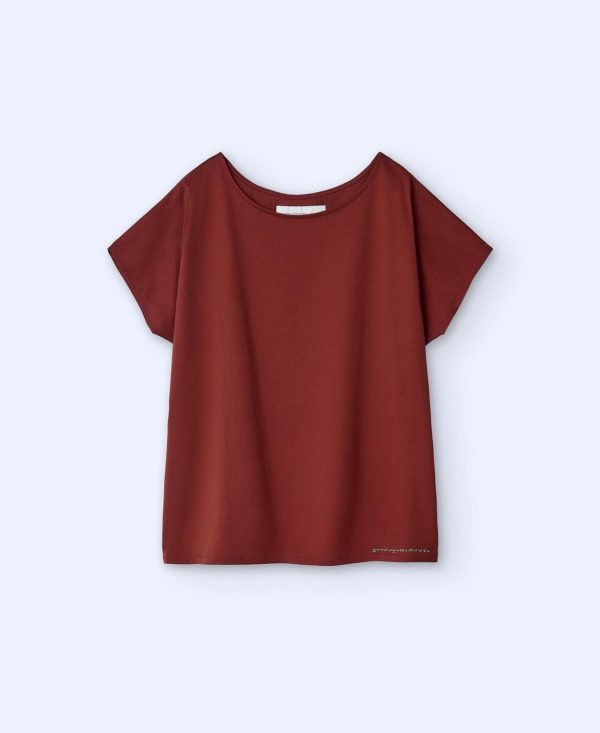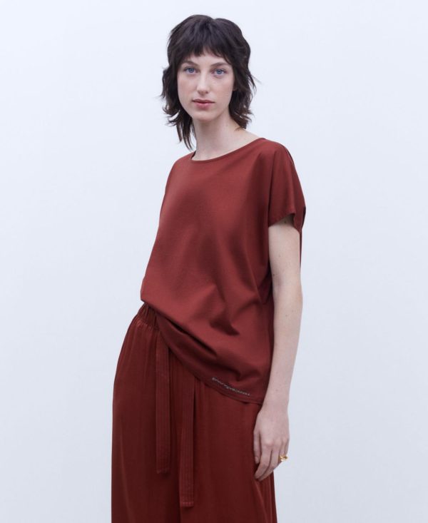 Adolfo Domínguez Camisetas | Camiseta En Algodón Con Cuello Caja Teja Mujer