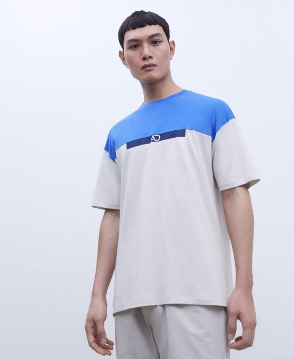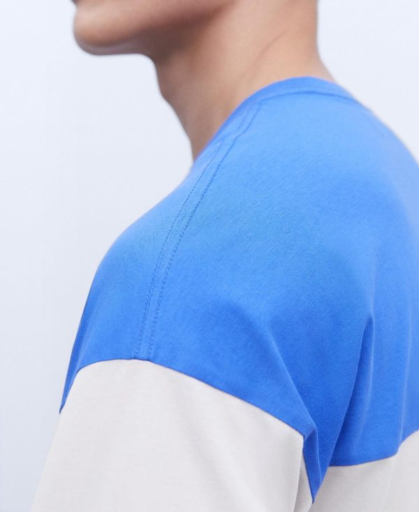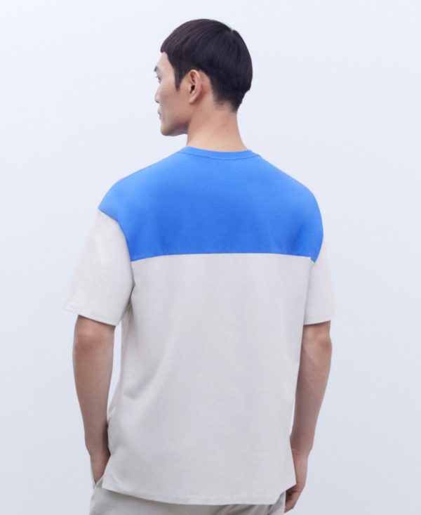 Camiseta oversize en algodón bicolor. Cuello redondo. Aberturas laterales. Logo en pecho. Hecha en Portugal.