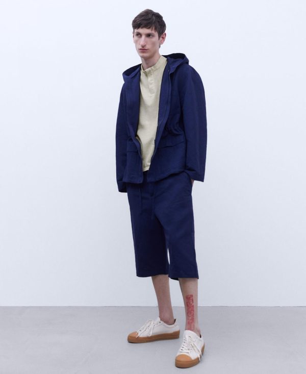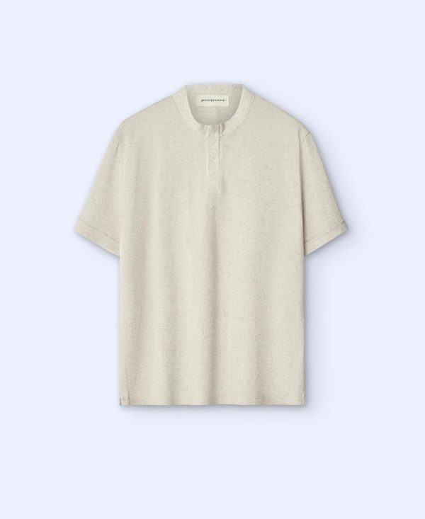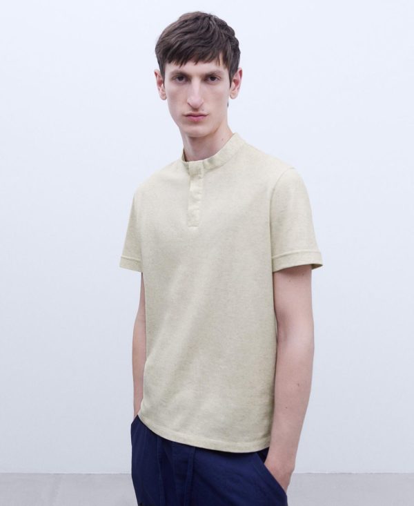 Adolfo Domínguez Camisetas Y Polos | Polo Cuello Mao En Algodón Y Lino Indigo Hombre
