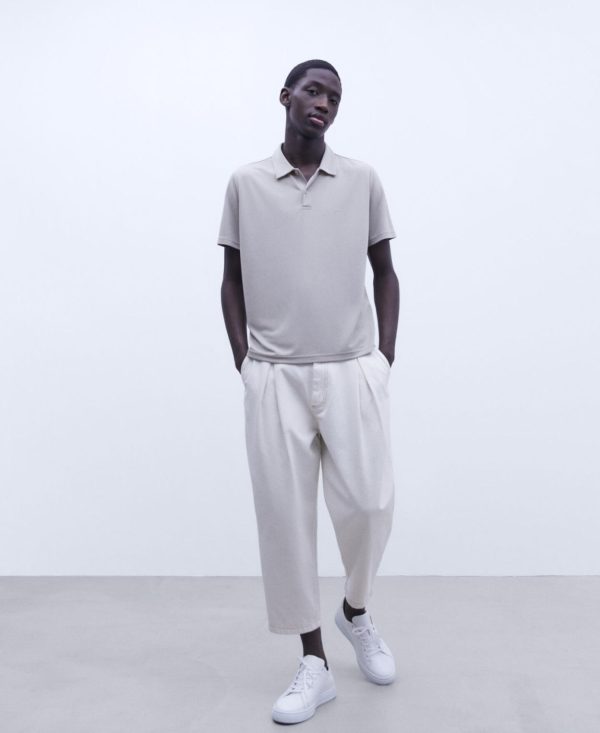 Adolfo Domínguez Camisetas Y Polos | Polo Cuello Mao En Algodón Y Lino Natural Hombre