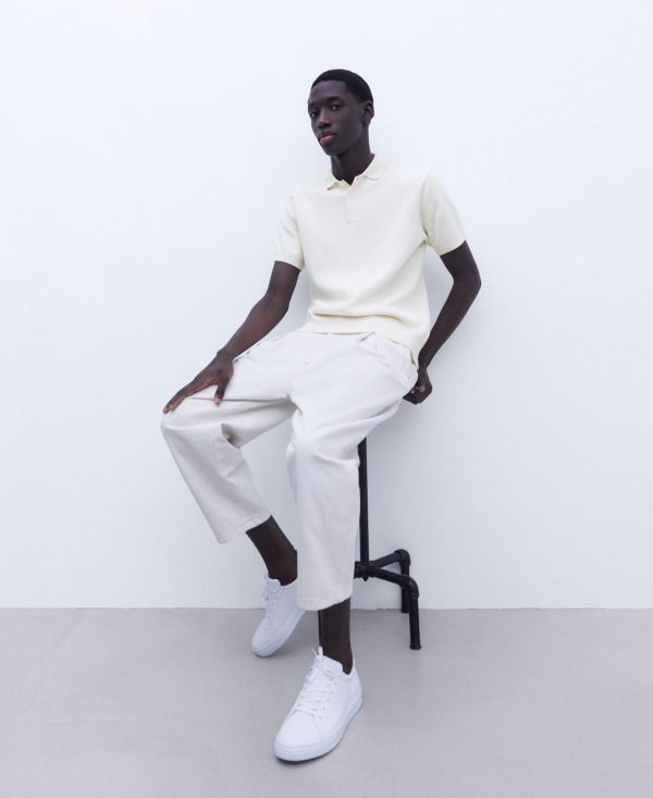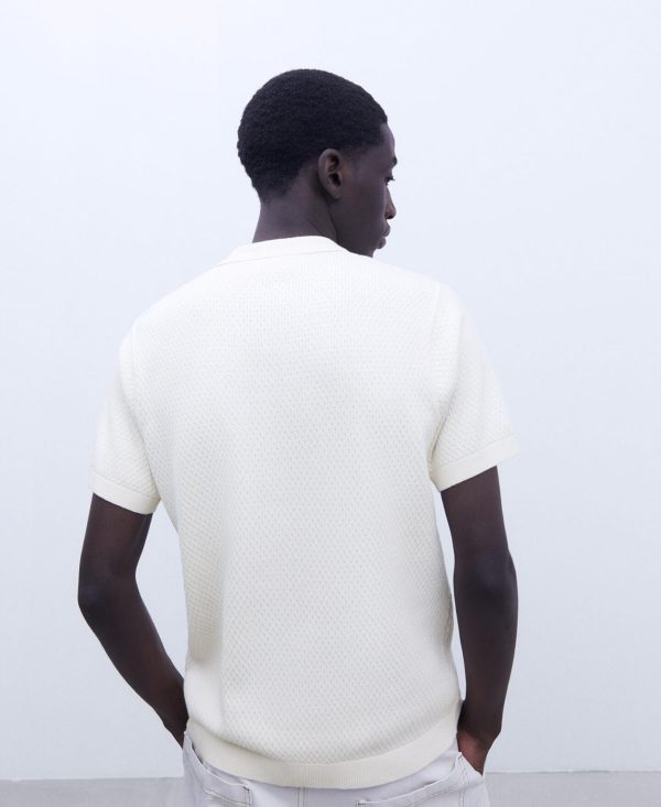 Cuello polo. Un botón. Manga corta. Remates en canalé.