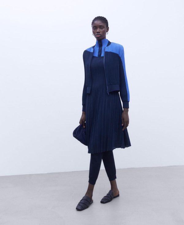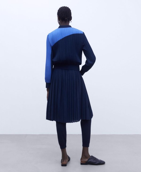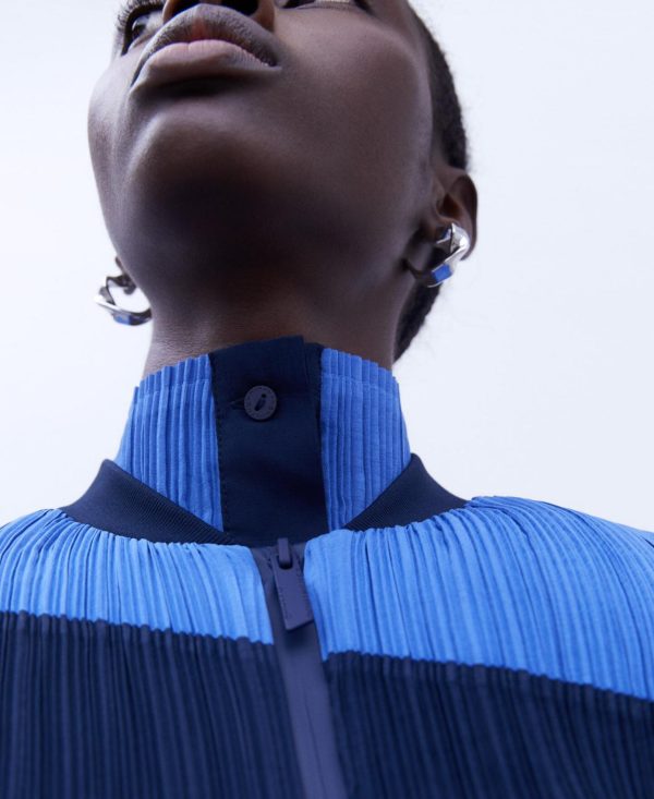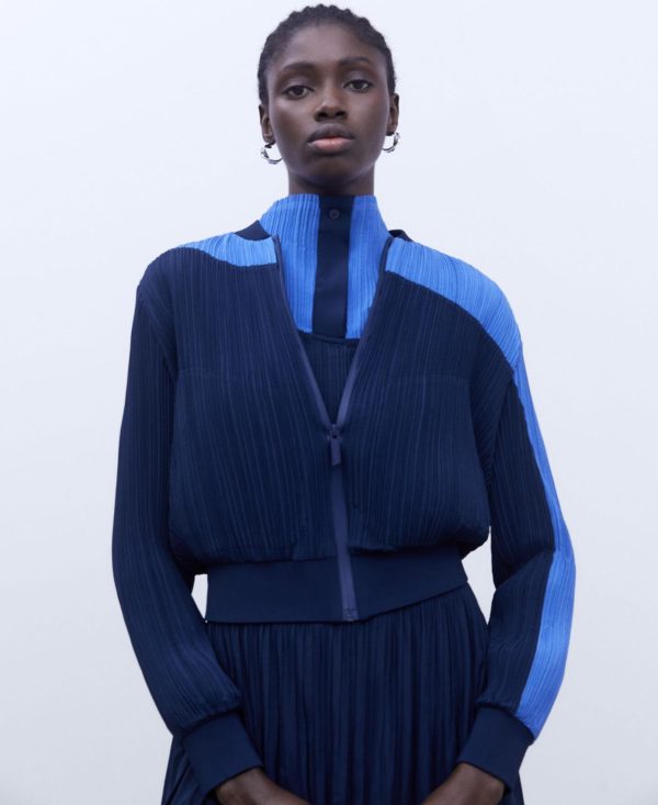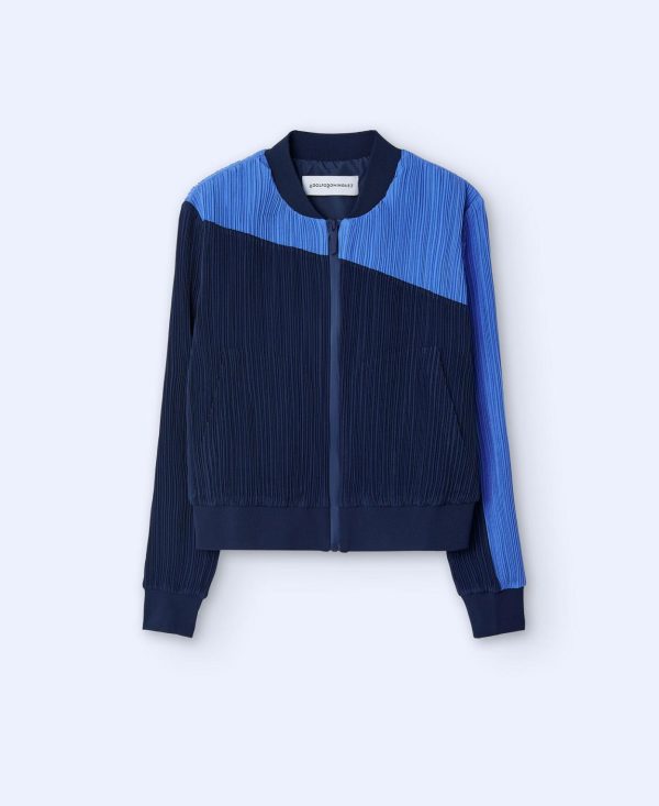 Cazadora bomber en crinkle. Cremallera central waterproof. Bicolor. Remates en canalé.