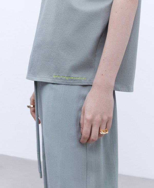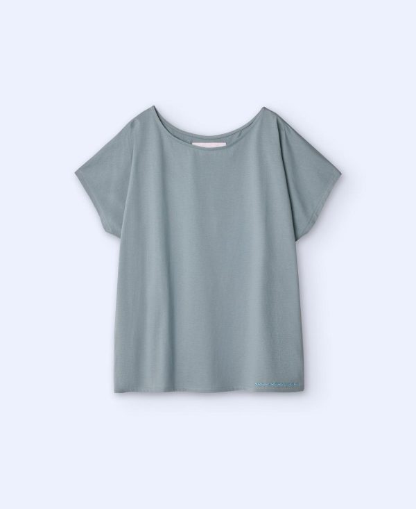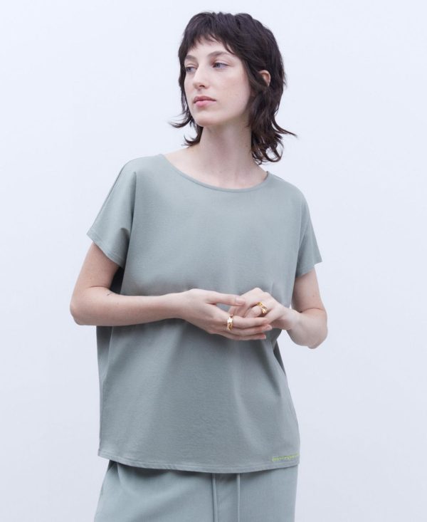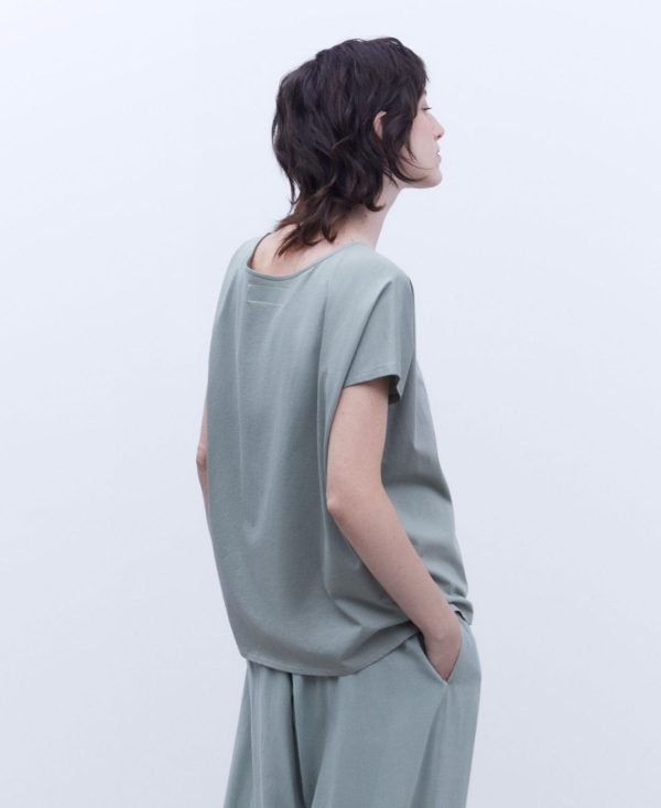 Adolfo Domínguez Esenciales | Camiseta En Algodón Con Cuello Caja Verde Claro Mujer