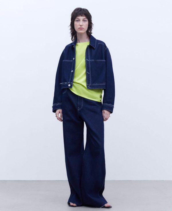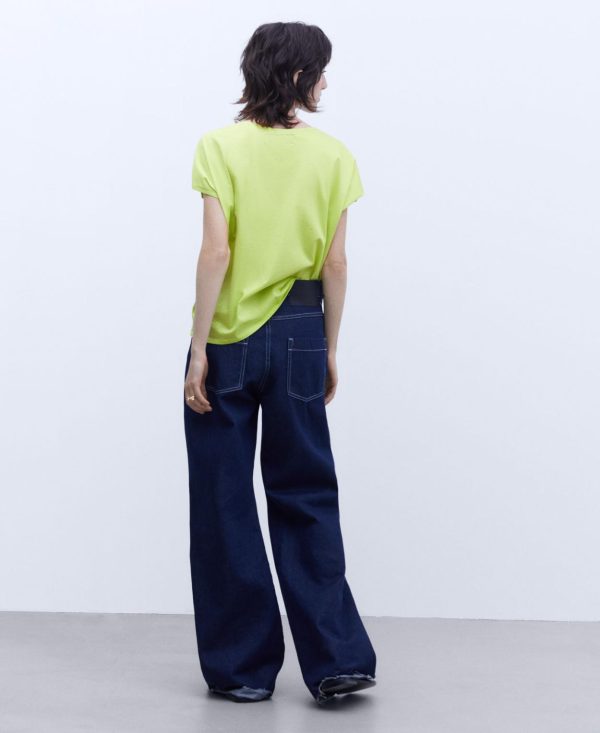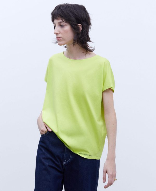 Camiseta en algodón con cuello caja. Manga corta. Logotipo bordado. Bajo recto.