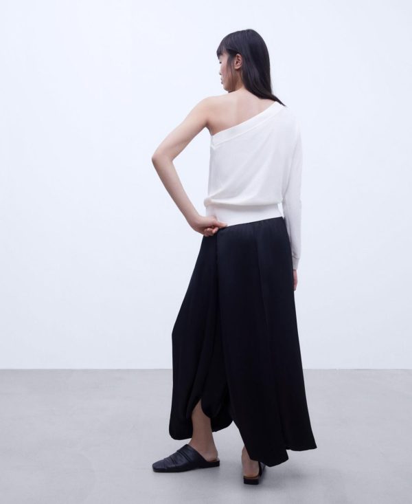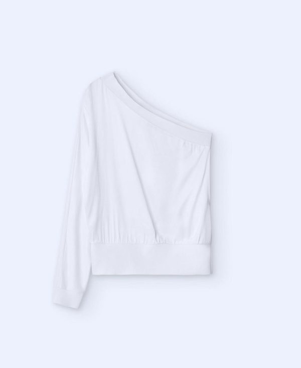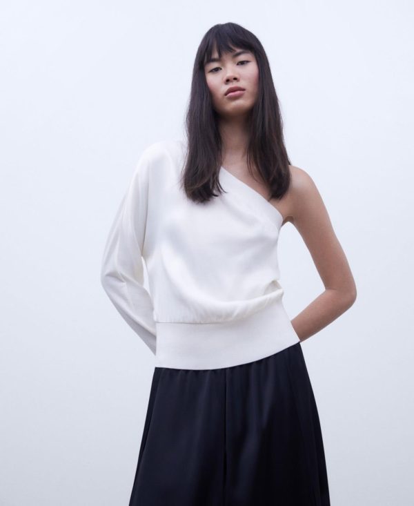 Camiseta fluida. Escote asimétrico. Una manga. Remates en canalé.