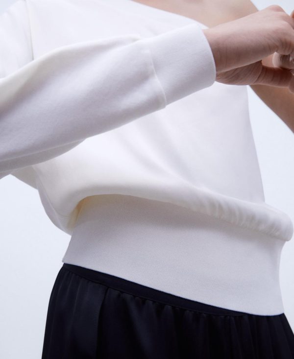 Adolfo Domínguez Camisetas | Camiseta Manga Caída En Algodón Elástico Blanco Natural Mujer