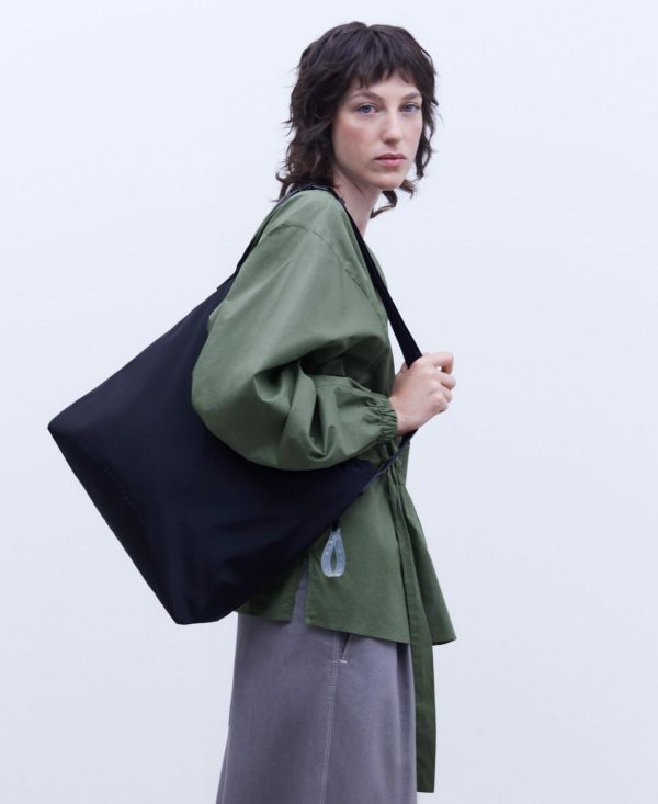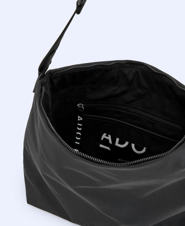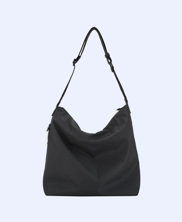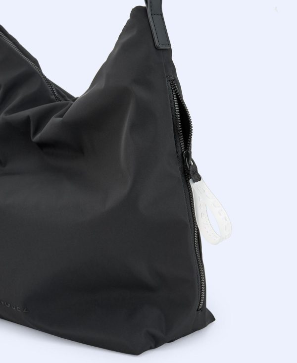 Textura lisa. Un compartimento. Cierre de cremallera. Bolsillo exterior. Asa larga en nailon. Cinta logotipada.