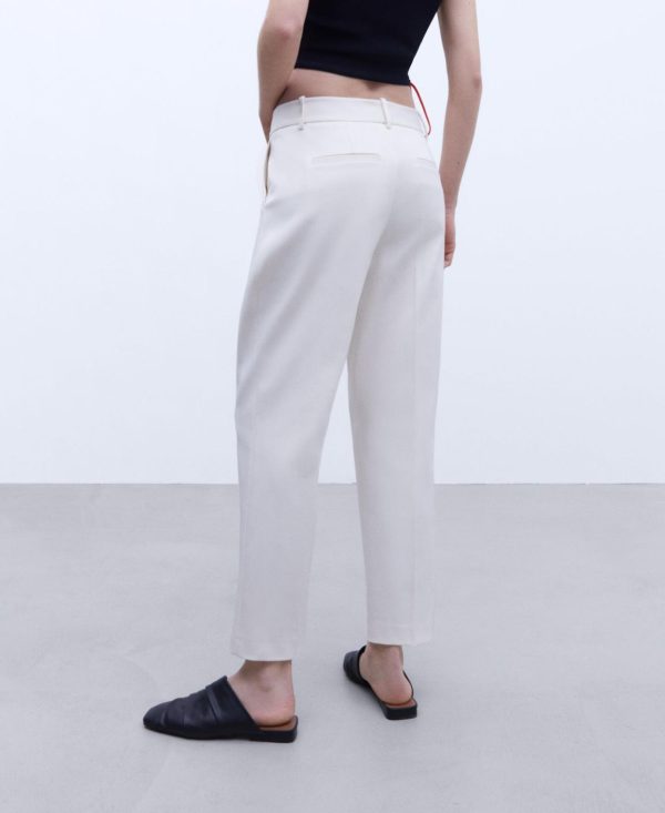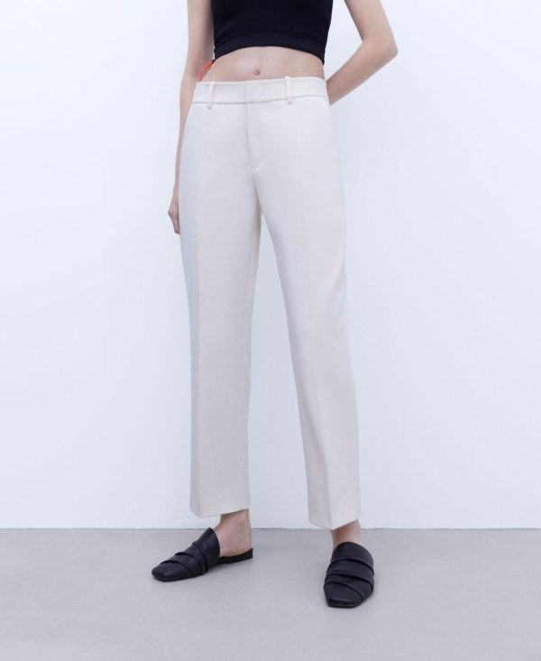 Pantalón corte recto. Trabillas. Cierre con corchete y cremallera. Bolsillo lateral. Pinza posterior. Bolsillo sastre posterior. Tobillero. Bajo recto.