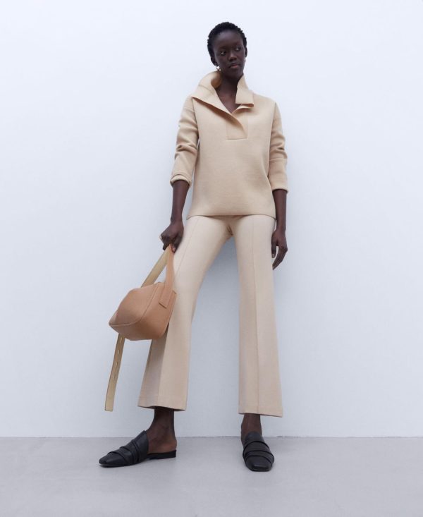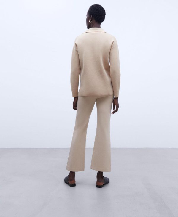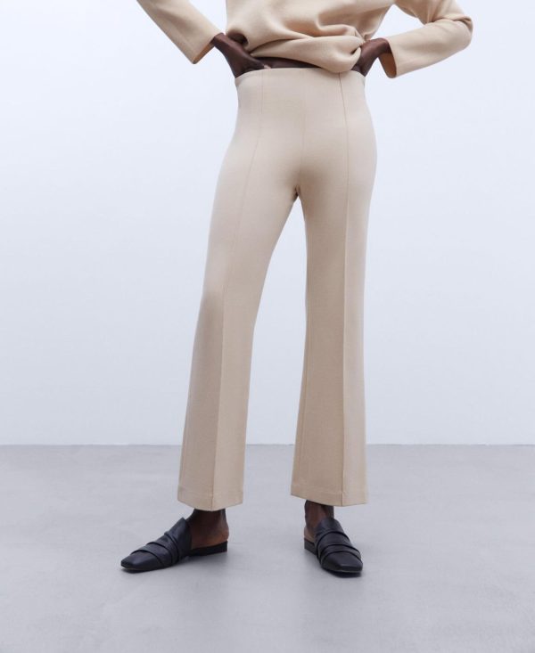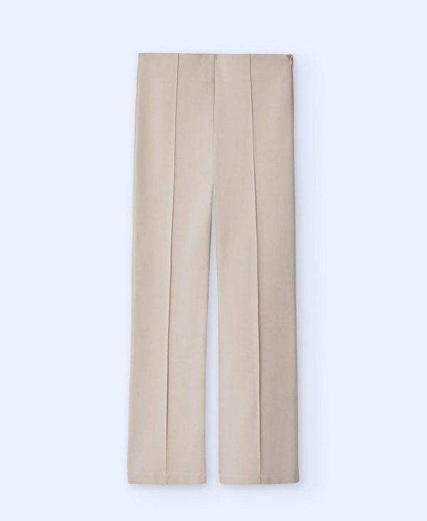 Pantalón en punto roma. Sin cinturilla. Cierre con cremallera invisible lateral. Raya frontal cosida. Pinza posterior. Bolsillo sastre posterior. Bajo recto.