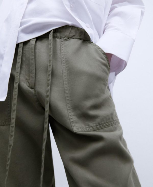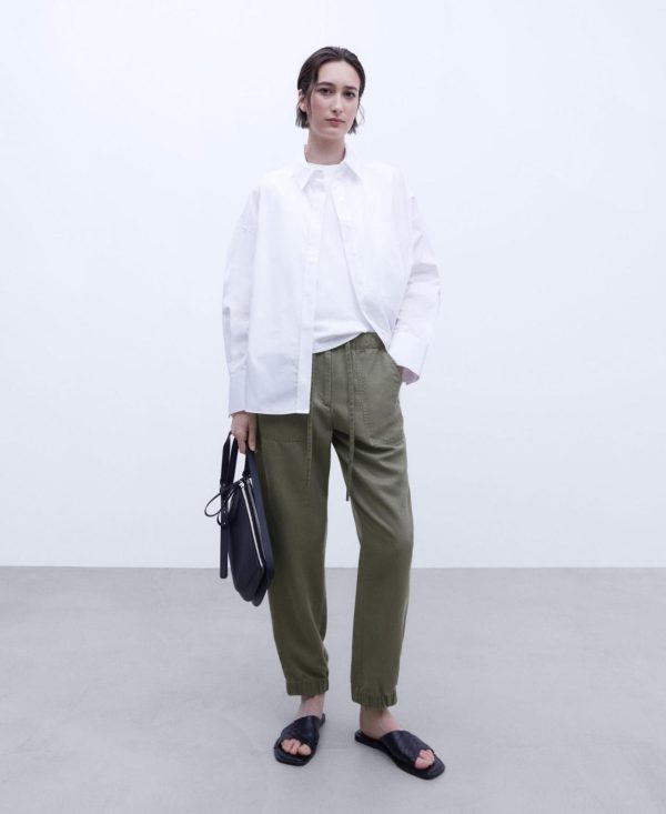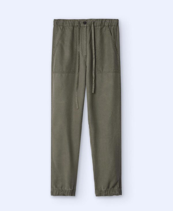 Cinturilla y bajo elásticos. Bolsillos laterales en vivo.