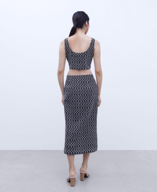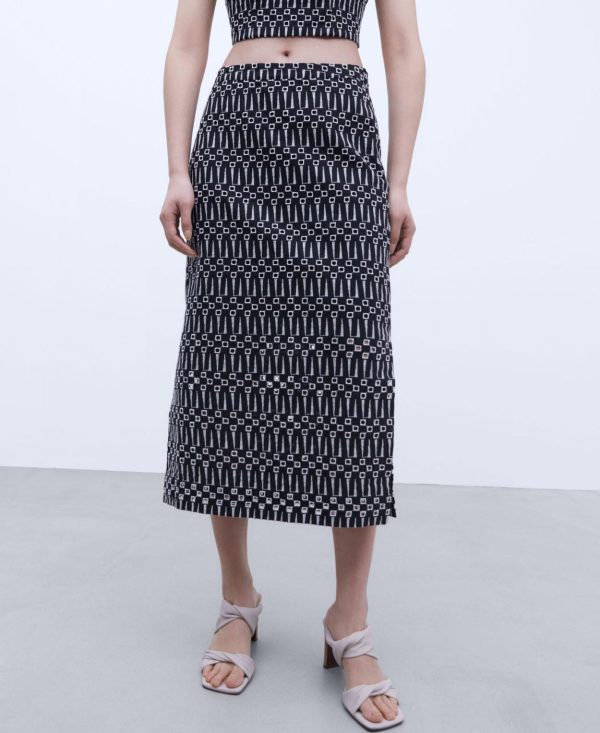 Adolfo Domínguez Faldas | Falda Bordado Inglés En Lino Y Algodón Blanco Y Negro Mujer