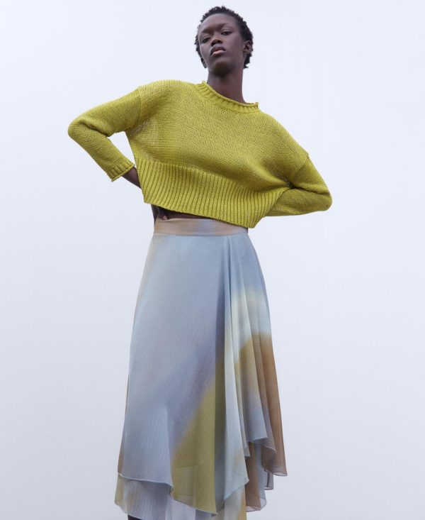 Adolfo Domínguez Faldas | Falda Dos Capas Estampada Amarillo Estampado Mujer