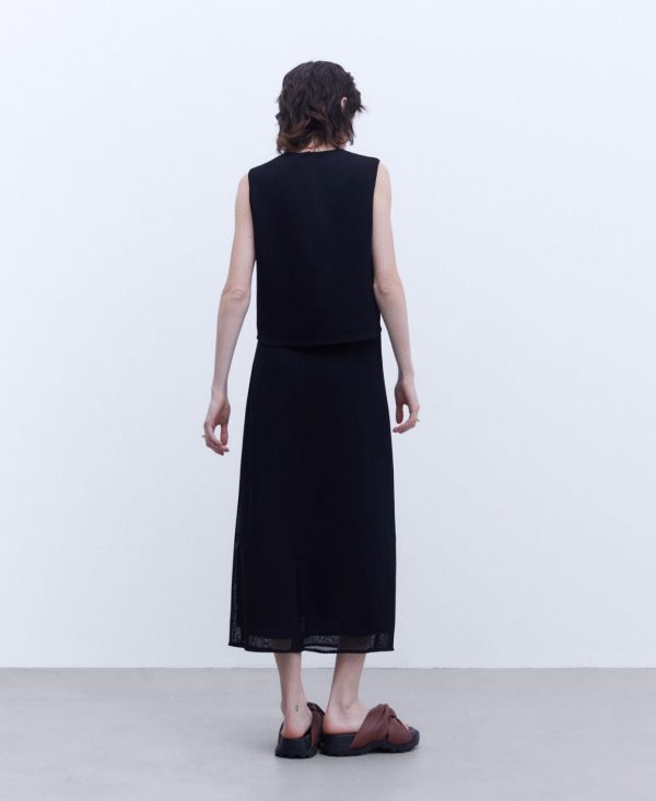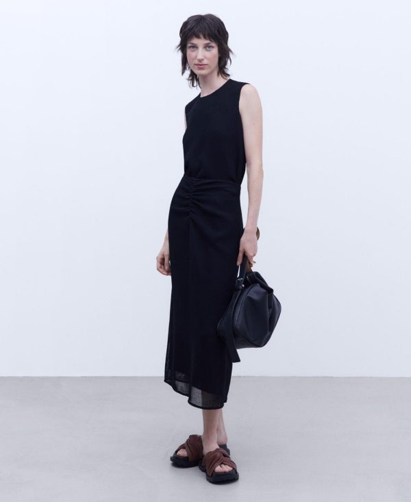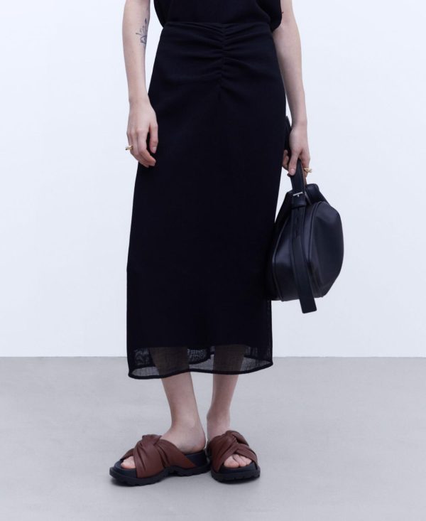 Adolfo Domínguez Faldas | Falda Midi Frunce Delantero Negro Mujer