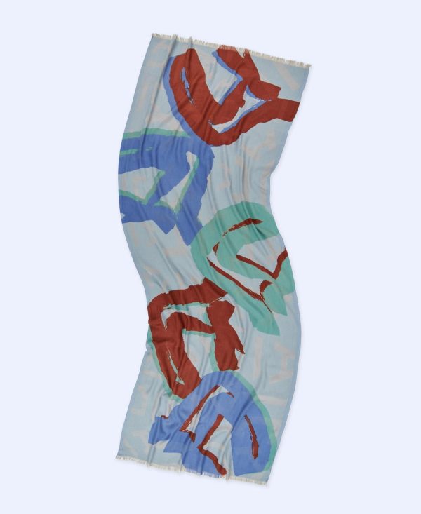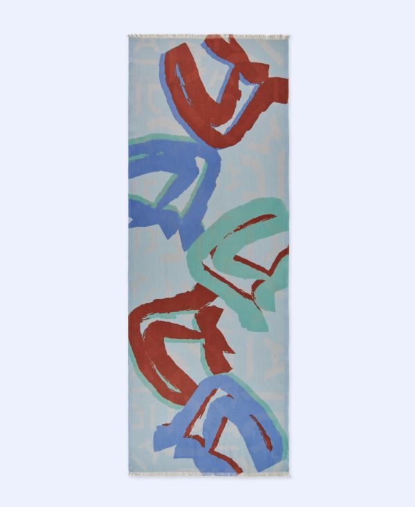 Chal estampado en algodón 100%. Motivo Vibrar. Fleco corto. Logotipado en jacquard.