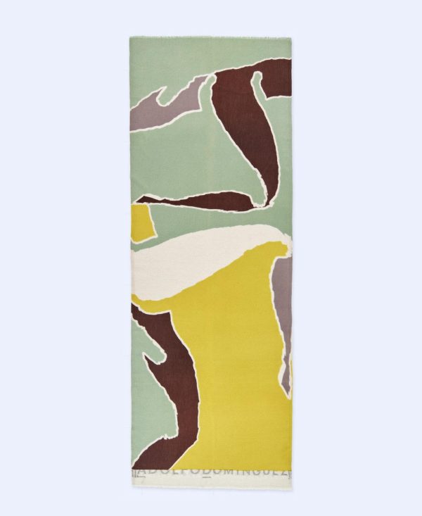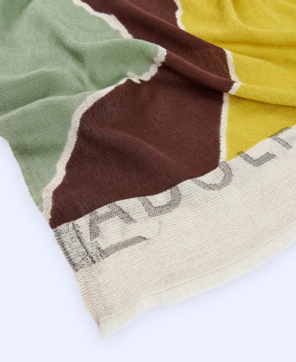 Chal estampado en algodón 100%. Motivo Vibrar. Fleco corto. Logotipado en jacquard.