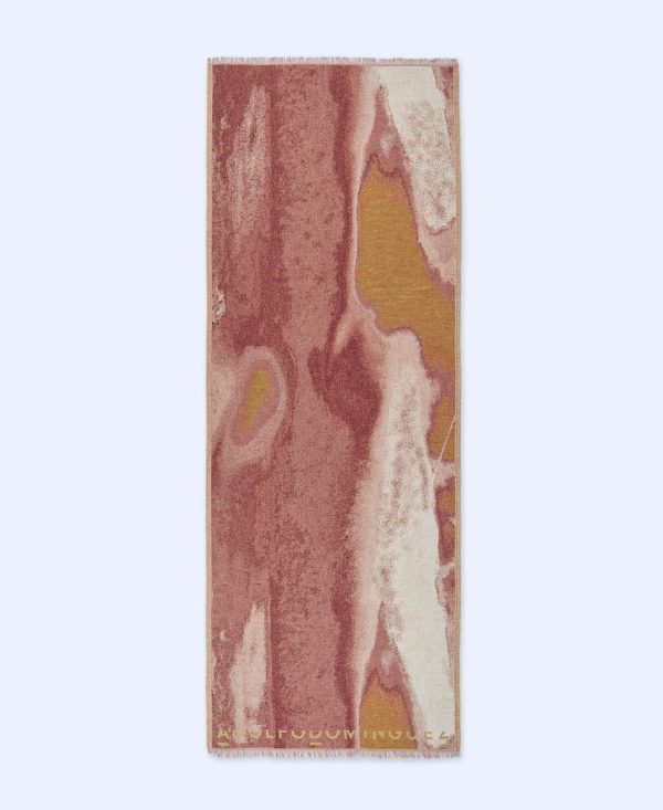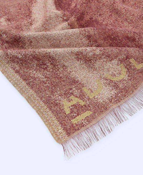 Chal estampado en algodón y modal. Jacquard. Logotipo con técnica cutwork. Fleco corto.