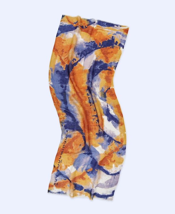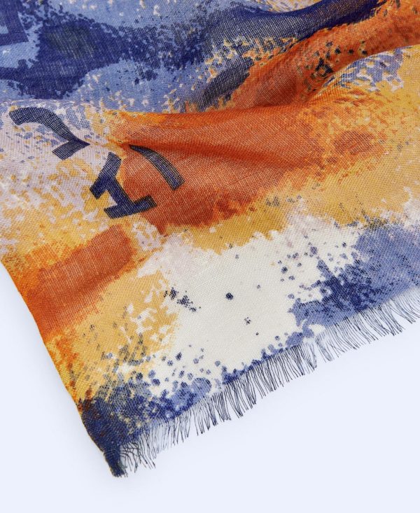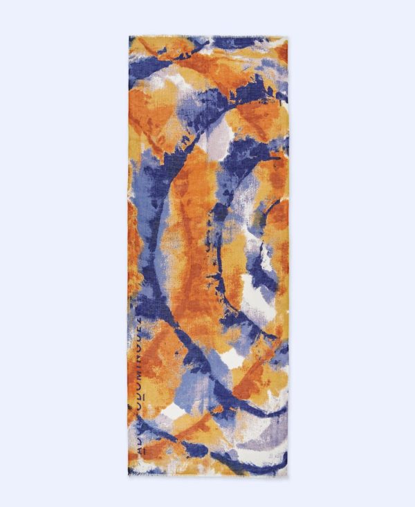 Adolfo Domínguez Foulares | Chal Estampado En Lino Y Modal Naranja Mujer