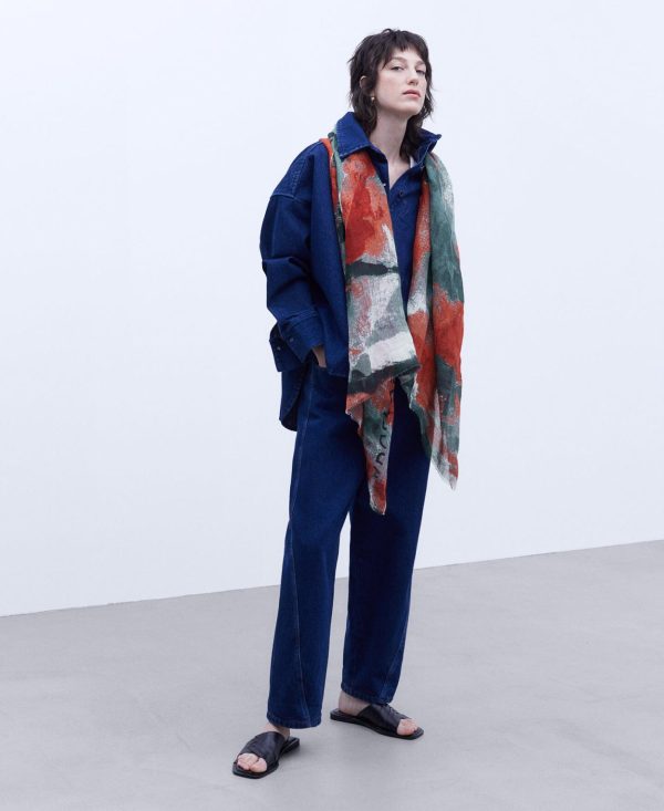 Adolfo Domínguez Foulares | Chal Estampado En Lino Y Modal Rojo Mujer