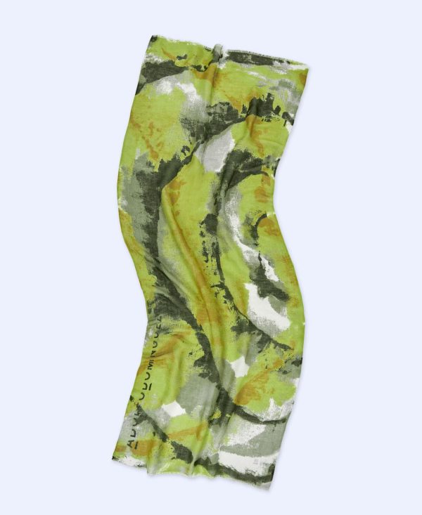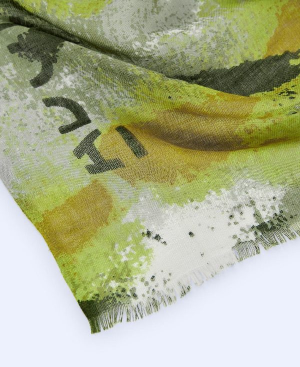 Adolfo Domínguez Foulares | Chal Estampado En Lino Y Modal Verde Mujer