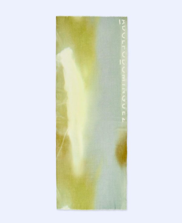 Chal estampado Huevo en lana merino. Logototipo lateral. Sin flecos.
