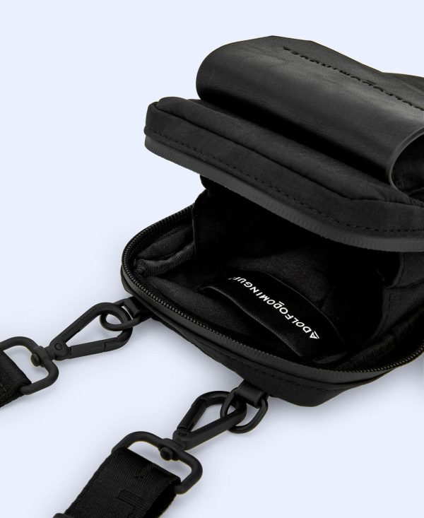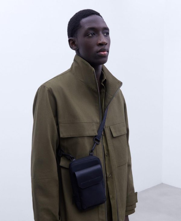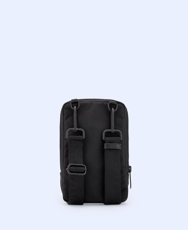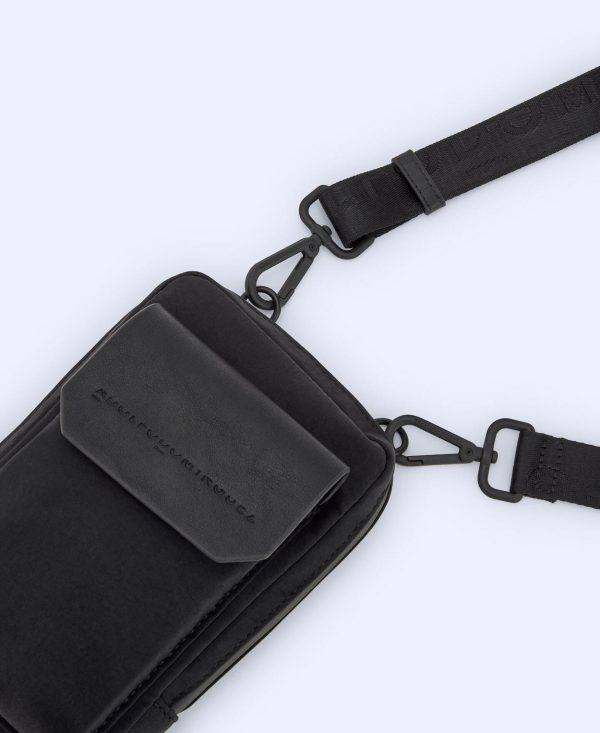 Un compartimento. Cierre cremallera termosellada doble cursor. Asa logotipada. Mosquetones metálicos. Correa nailon reciclado.