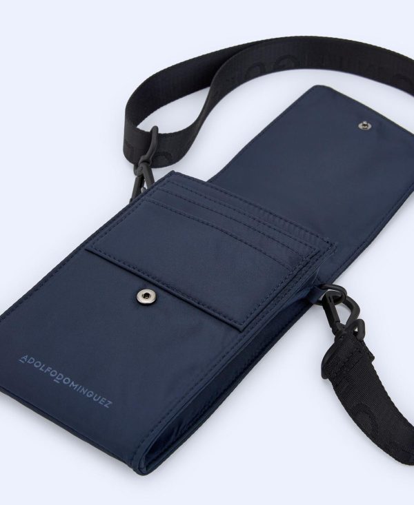 Tarjetero frontal y cierre con snap. Cinta logotipada. Mosquetones metálicos.